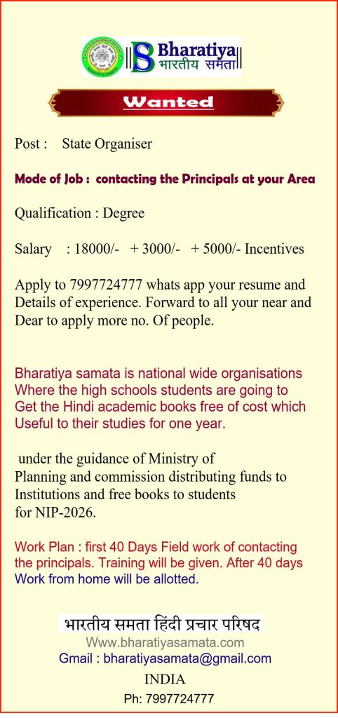 Duty (mode of job ) : contact the members to raise a word for Free Hindi books for needy chidlren help.